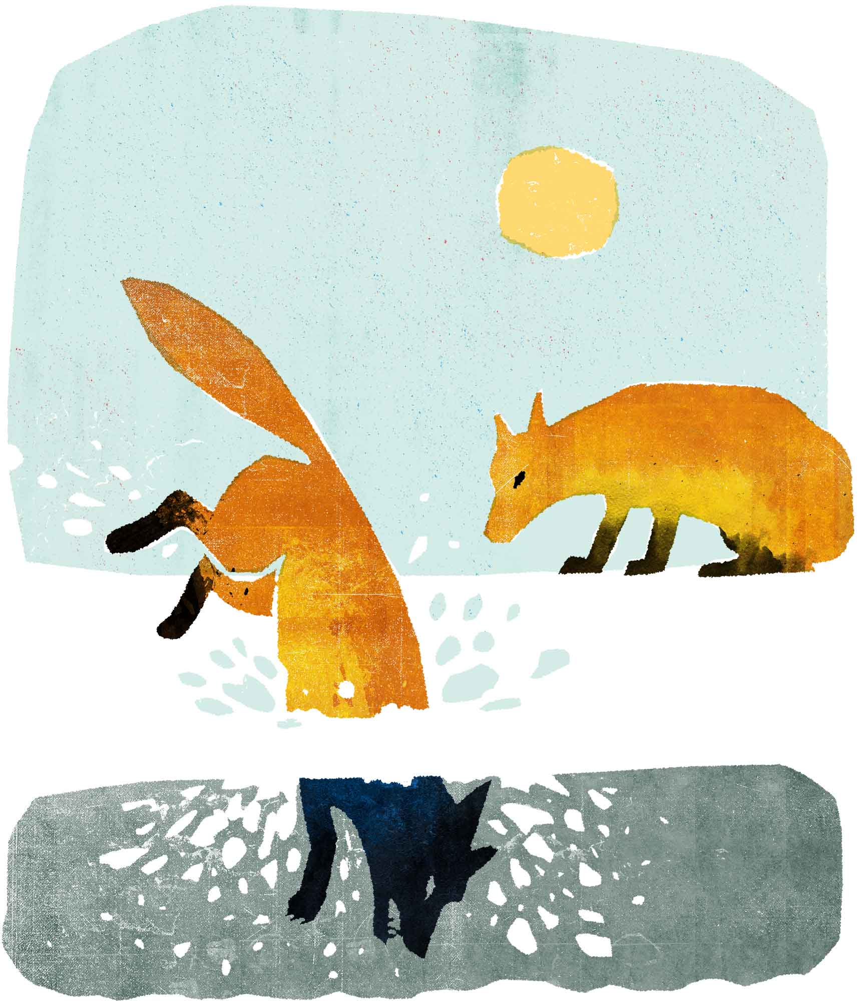 Plunge! Old Granny Fox dived right into the snow and right through into the tunnel of Dani Meadow Mouse. Her two black paws actually touched Dani’s tail. Dani was glad then that it was no longer.